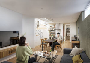 視線を遮りながらも抜け感をつくり、家族が心地よく集える団らんの空間に。